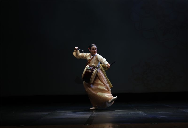 천지의 울림이 시작된다. 평화의 북소리다. 윤명화무용단 대표이자 (사)박병천류 진도북춤보존회 부회장 윤명화의 ‘진도북춤’이다. 솔로춤이지만 아우라가 상당한 그의 춤은 잔향 깊다. 피날레 무대는 태평성대를 꿈꾸는 오늘과 내일이 담긴 ‘화선풍류(花扇風流)’다. 박영미, 윤채은(처용무 이수자), 이석원(승무 전수자), 송재이가 함께했다. 여성춤 ‘화선무’와 남성춤 ‘한량무’를 재구성해서 만든 선우예술단의 대표 레퍼토리 중 하나다. 화합과 상생을 담은 평화의 춤이다.