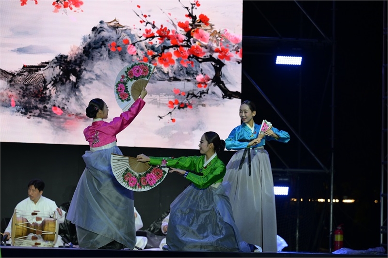 교방의 춤에는 황해도무형유산인 ‘화관무’를 중심으로 ‘입춤’, ‘부채입춤’, ‘해주 수건춤’ 등의 다양한 교방 춤미학을 통해 메인 무대를 수놓았다. 문화제의 연출을 맡은 황해도무형유산 화관무 차지언 보유자의 지도와 출연으로 인해 빛을 더했다.