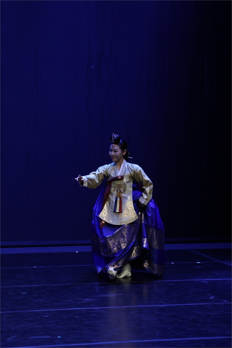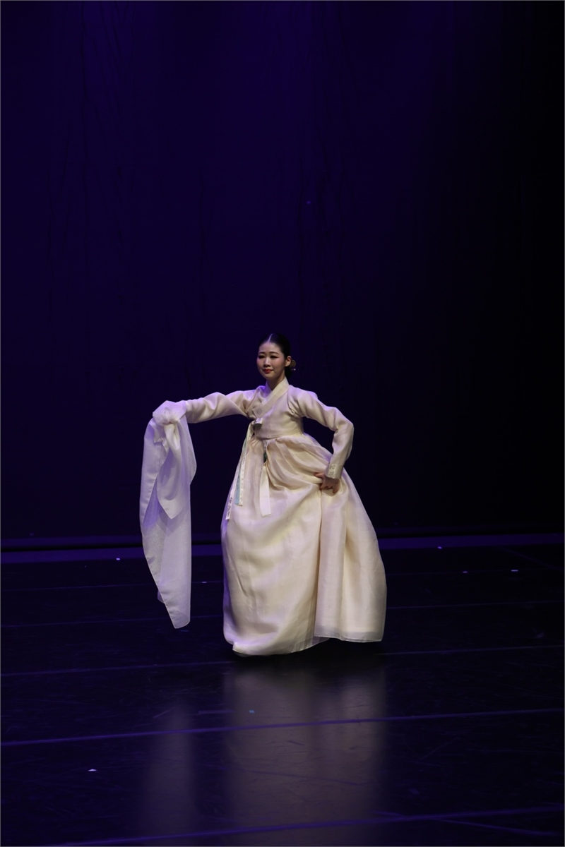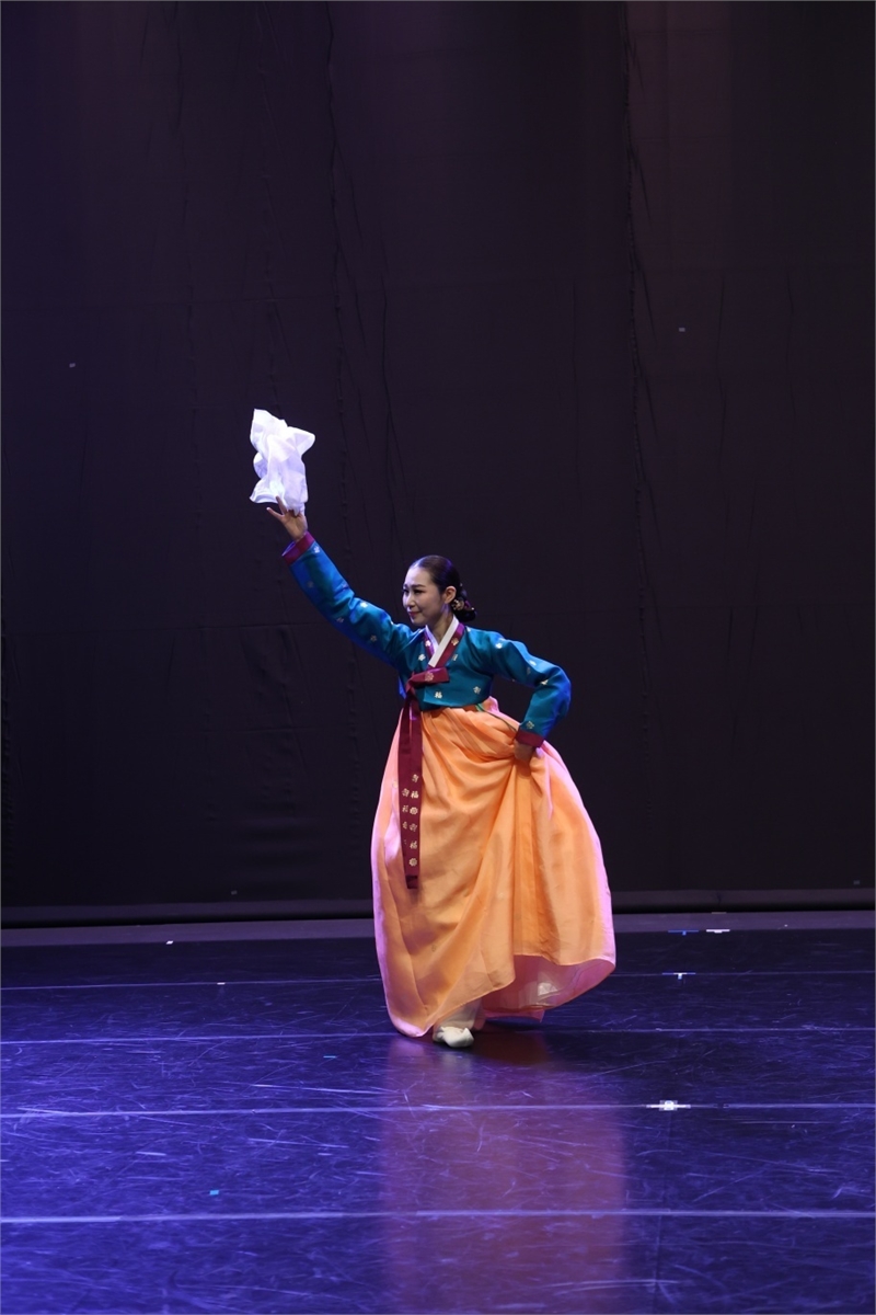 신명의 분위기가 순간 침잠된다. 묵직한 전통의 강을 소리 없이 건넌다. 김윤서(구미시립무용단 단원)의 ‘이매방제 임이조류 살풀이춤’이다. 구음 속 퍼져가는 선의 행렬이 공간을 유영한다. 차분하다. 편안하다. 안정된 춤적 기운이 살풀이 수건에 단단히 동여매져 있다.