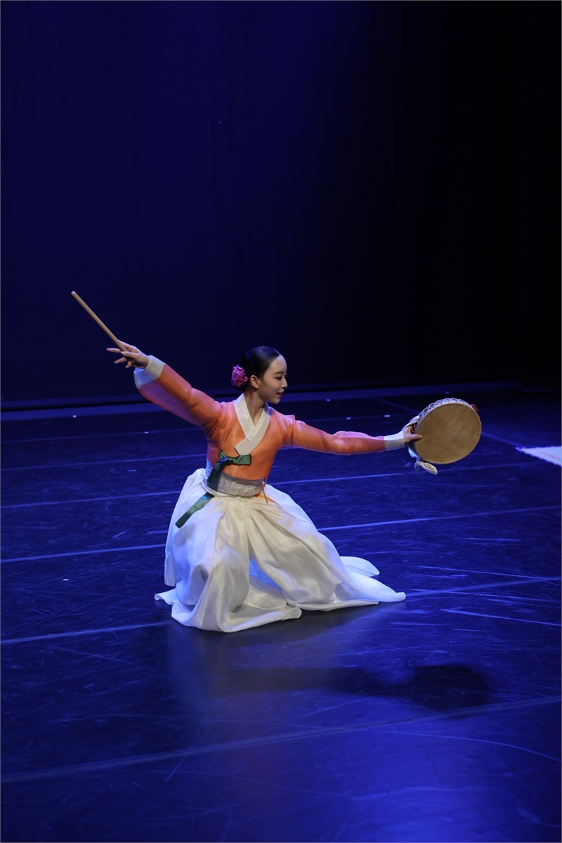 장단에 맞춰 무대 우측에서 최백랑(경북도립국악단 무용단 단원)이 등장한다. 무대 중앙에 위치할 때 태평소 소리가 소고춤을 전조(前兆) 한다. ‘최종실류 소고춤’은 진주삼천포농악 소고놀이에 근간을 둔 춤이다. 이채로운 춤사위와 흥겨운 가락이 구성미를 채워주는 춤이다. 최백랑이 가락을 조율하며, 한 땀 한 땀 풀어낸다. 경쾌한 움직임과 신명은 기경결해(起景結解)를 정확히 관통했다.