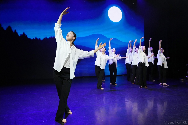 2025년 11월 <다시, 천명> 공연에서 서연무용단의 4명이 추었던 작품 ‘풍류가인’이 7명(홍예리, 양윤정, 김진아, 이소은, 김민지, 도유정, 장윤진)으로 확장해 가인(佳人)이 됐다. 故 최현 선생의 춤 철학을 군무 형태로 재조명한 이 작품은 서울대 체육교육과 출신 스승이자 선배인 최현의 춤 향기를 후배들을 통해 전달한 의미도 있다. 4명이 출 때의 세련됨과 아정함, 5명이 출 때의 정적임과 세찬 기운이 공간을 채운다. 소리와 어우러져 7명이 함께할 땐 ‘풍류가인’이란 숨을 크게 내쉰다. 대형 변화에 따른 공간 창출, 음악과의 배합이 조화롭다. 무용단 레퍼토리로 자리잡을 만하다.