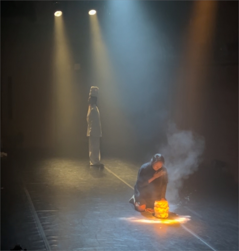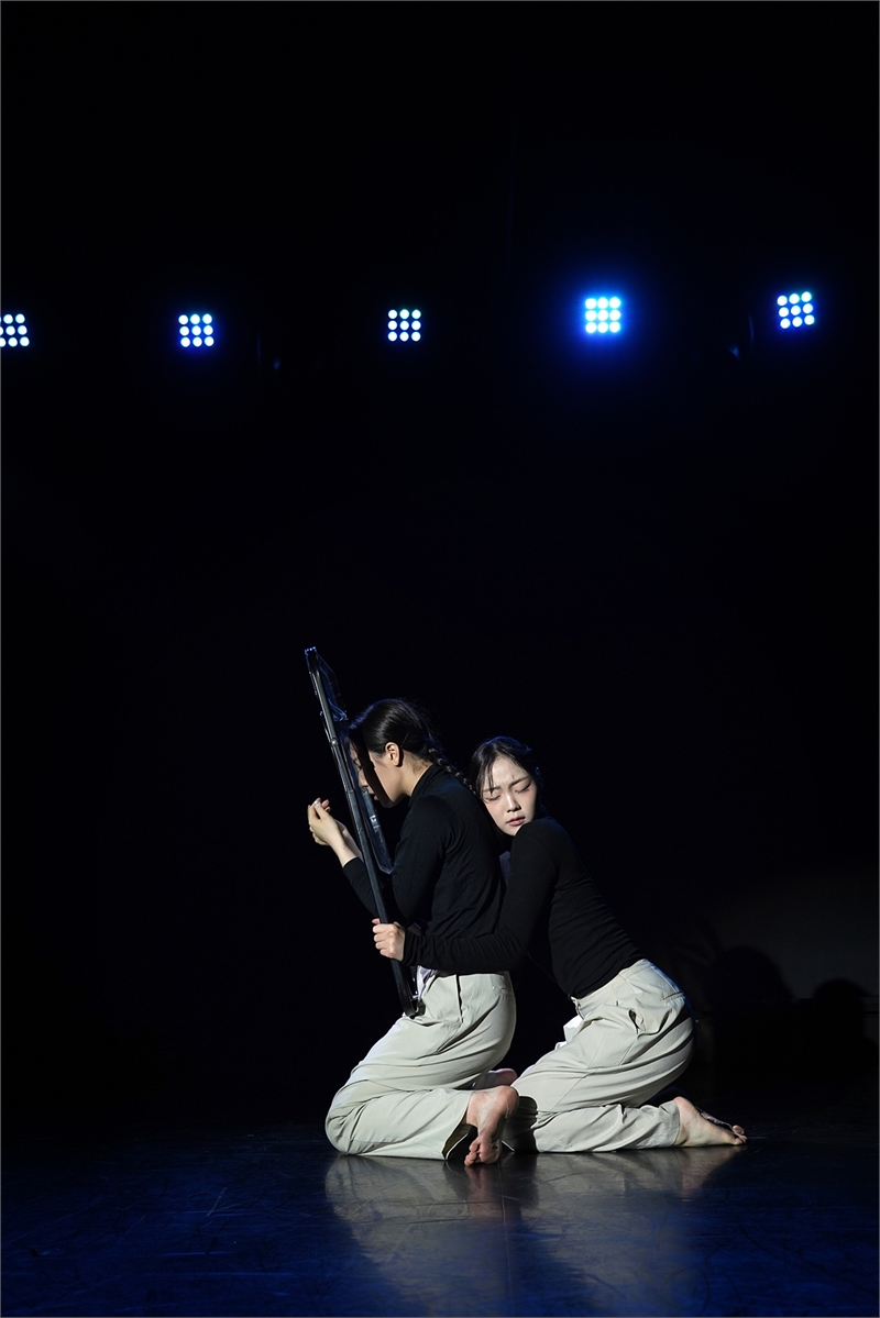 2025년 8월의 ‘영(影), 生’에 대해 필자는 ‘미니멀하되 진중한 사유의 무대’라 평한 바 있다. 당시 한지혜, 곽승주 두 명이 출연했다. 이번 무대에서는 곽승주, 곽승린, 한지혜가 출연해 보다 깊어진 한지혜 안무 ‘영(影), 生 ver.2’로 돌아왔다. 작품에서 ‘의자’는 오브제로 삶과 죽음을 경계짓는 중요한 장치 역할을 했다. 생(生)의 강을 건넌다. 물소리 날 땐 폐부를 찌르는 강렬함이 전달된다. 삶이 끝난 뒤 남겨진 짙은 그림자는 음영을 넘어 그리움, 기억, 흔적 등 여러 삶의 편린들을 남긴다. 떠난 자와 남겨진 자의 숨죽인 대화를 차분하게 그려낸 이 작품은 ‘위혼무(慰魂舞)’의 가치를 창작적 순도 높여 구현했다.