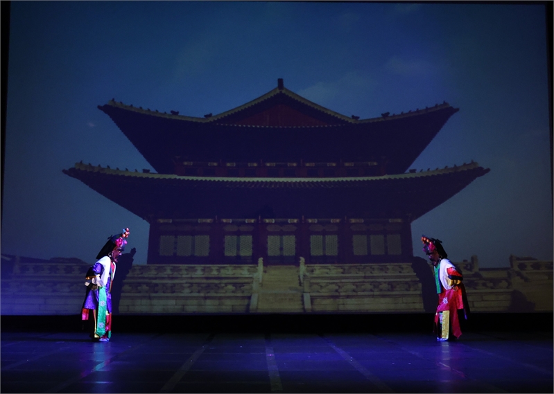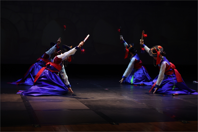 천지의 울림이 시작된다. 평화의 북소리다. 윤명화무용단 대표이자 (사)박병천류 진도북춤보존회 부회장 윤명화의 ‘진도북춤’이다. 솔로춤이지만 아우라가 상당한 그의 춤은 잔향 깊다. 피날레 무대는 태평성대를 꿈꾸는 오늘과 내일이 담긴 ‘화선풍류(花扇風流)’다. 박영미, 윤채은(처용무 이수자), 이석원(승무 전수자), 송재이가 함께했다. 여성춤 ‘화선무’와 남성춤 ‘한량무’를 재구성해서 만든 선우예술단의 대표 레퍼토리 중 하나다. 화합과 상생을 담은 평화의 춤이다.