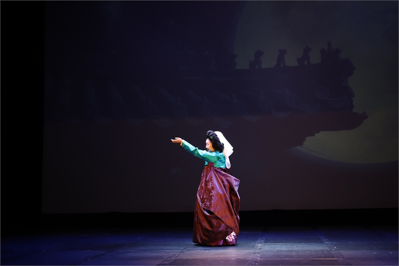‘월하(月下)의 춤’이 이어진다. 박영미의 독무 ‘교방살풀이춤’을 통해 어려움을 이겨내는 내적 본산인 흥을 풍류성 있게 풀어냈다. 처용무와 더불어 가장 오래된 연원을 가진 ‘검무’. 진주검무 이수자 네 명(송선숙, 송임숙, 이정희, 노유나)의 칼끝이 액운을 물리치고, 염원을 노래한다. ‘염원의 끝_구국의 검무’가 섬광을 번쩍인 순간이다.