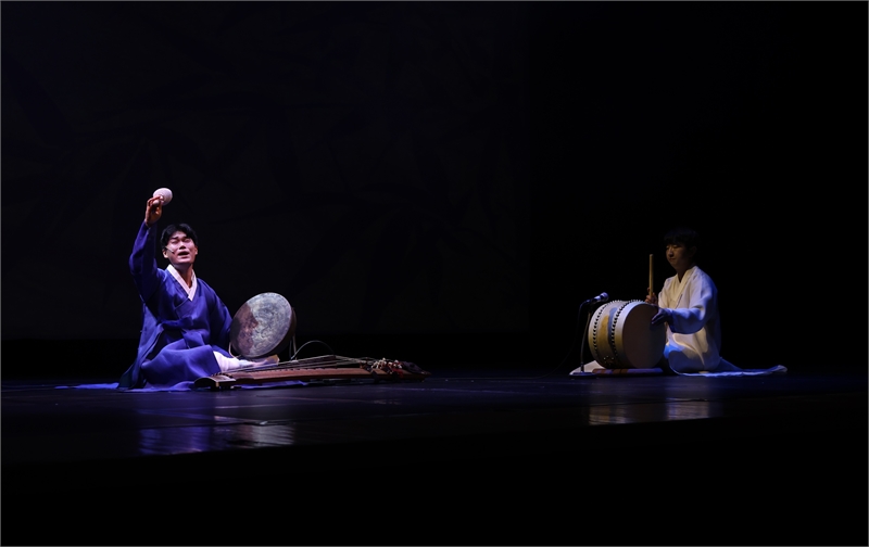 국가무형유산 거문고산조, 심청가 전수자 한승호와 전북도 무형유산 판소리 수궁가 이수자 이세영이 합을 맞췄다. 적벽가 중 ‘조자룡 활 쏘는 대목’이다. 신쾌동류 거문고병창에 얹힌 용의 활은 태평을 깨우기에 충분했다. 젊은 예인의 패기 또한 한몫했다. 이번 공연의 주제가 강하게 담긴 ‘강구연월_풀이춤’을 박영미가 살풀이춤을 통해 선보인다. 염원은 위로가 됐고, 희망은 푸리와 풀이를 넘나들었다.