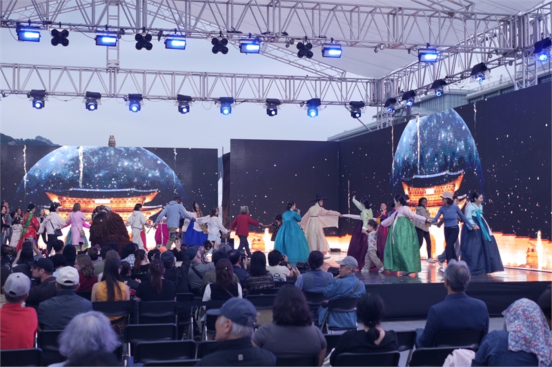 2025년 10월 17일(금) 오후 4시 20분, 광화문 광장에 열린 ‘한복의 아름다움, 전통춤으로 물들다’는 17일 개막식에 앞서 한국의 전통문화예술을 제대로 알리는 역할을 했다. 전통춤을 메인으로 한 공연 프로그램은 시민들과 함께 어울림 마당 그 자체가 됐다.