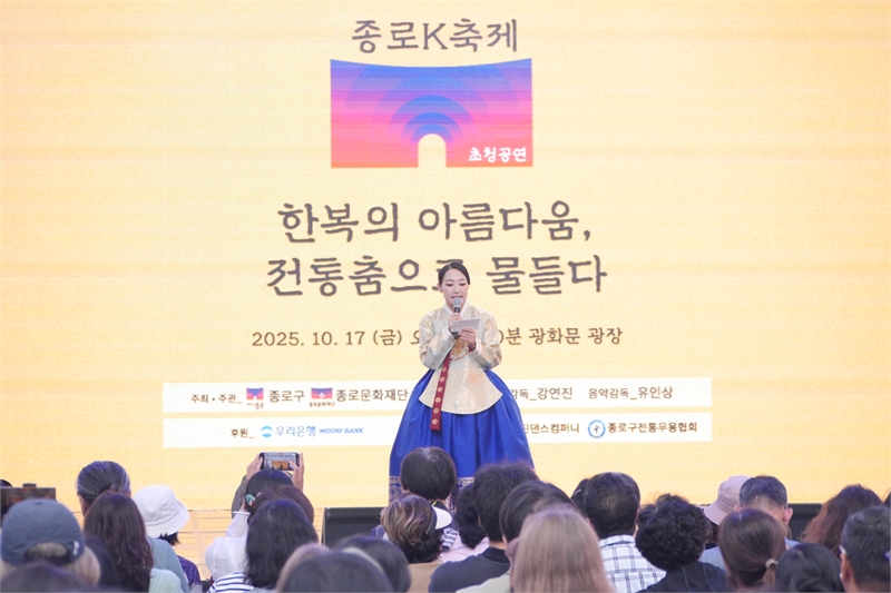[댄스TV=이주영 무용평론가] 10월, 종로가 ‘K의 물결’로 물들었다. 종로구 주최, 종로문화재단 주관으로 진행된 ‘종로K축제’다. 2025년 10월 10일부터 19일 동안 종로 곳곳에서는 전시, 강연, 공연, 판매, 교육, 체험 등이 이루어졌다. 그중 10월 17일과 18일 양일간 광화문 광장에서의 다채로운 프로그램은 K-POP, K-드라마, K-MUSIC 등 한국의 세계화, 한류를 견인하는 다양한 콘텐츠들이 한국의 문화를 문화예술, 무형유산, 문화콘텐츠로 선보였다.
