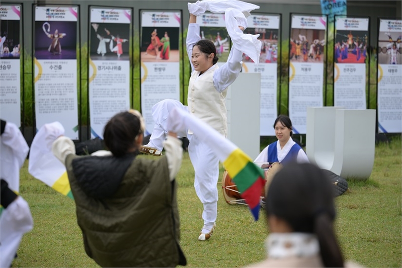 깊은 구음 속 춤으로 한을 달랜 살풀이성 강한 김리혜 안무, 출연의 ‘흩어진 삶의 무대’, 명인 김덕수의 장구와 연주단의 라이브 연주가 춤에 힘을 보탠다. 객석에서 등장해 함께하는 축제를 알린 (사)북청사자놀음보존회의 ‘사자춤’, 차지언의 안무와 지도로 세종대학교 무용과 9명 무용수들의 ‘진도북춤’과 ‘소고춤’이 민속춤의 가치와 미래를 동시에 고양한다. 판굿이 춤과 어우러져 연희성과 춤성이 동시에 연출돼 축제성을 제고했다.